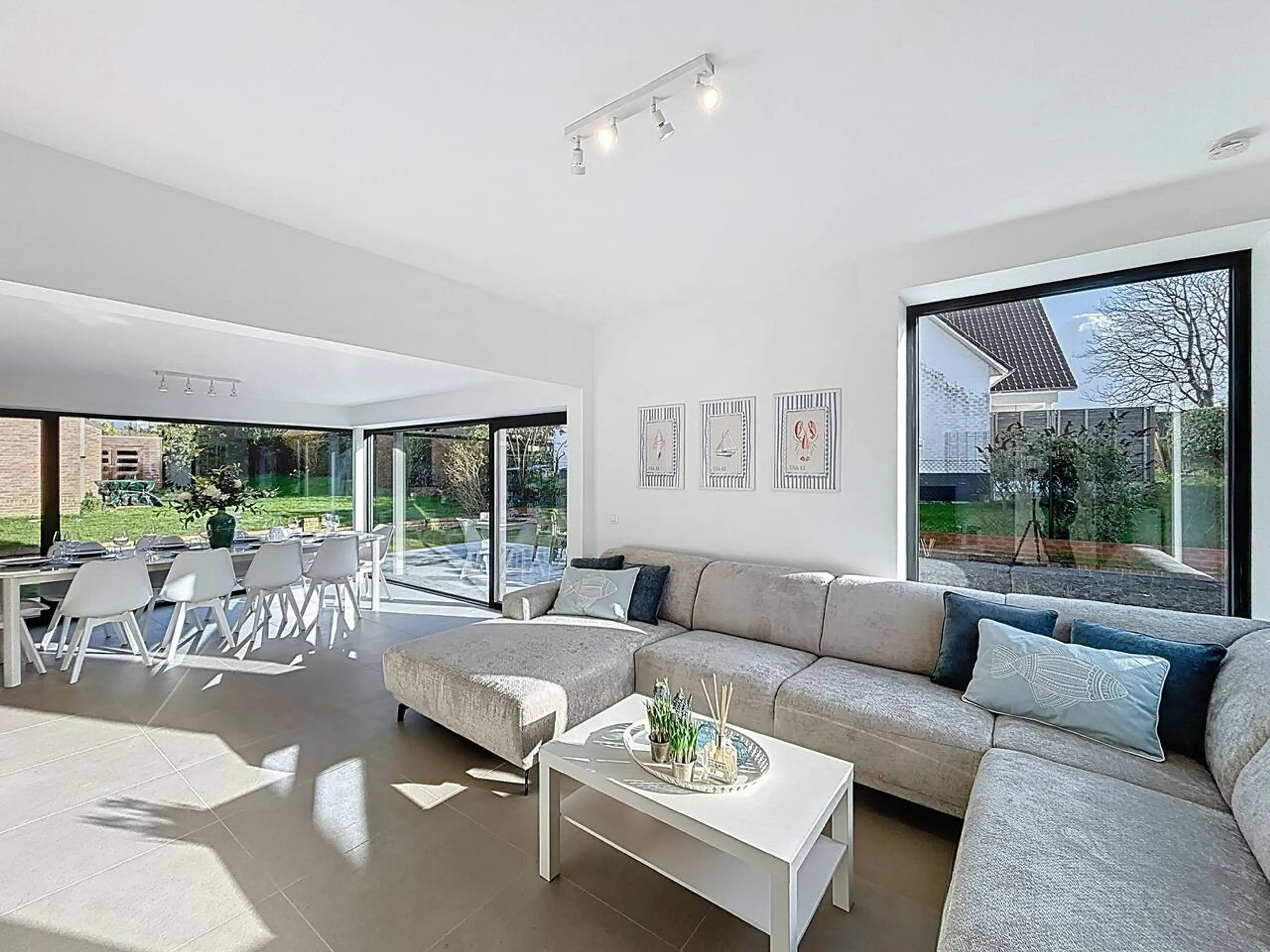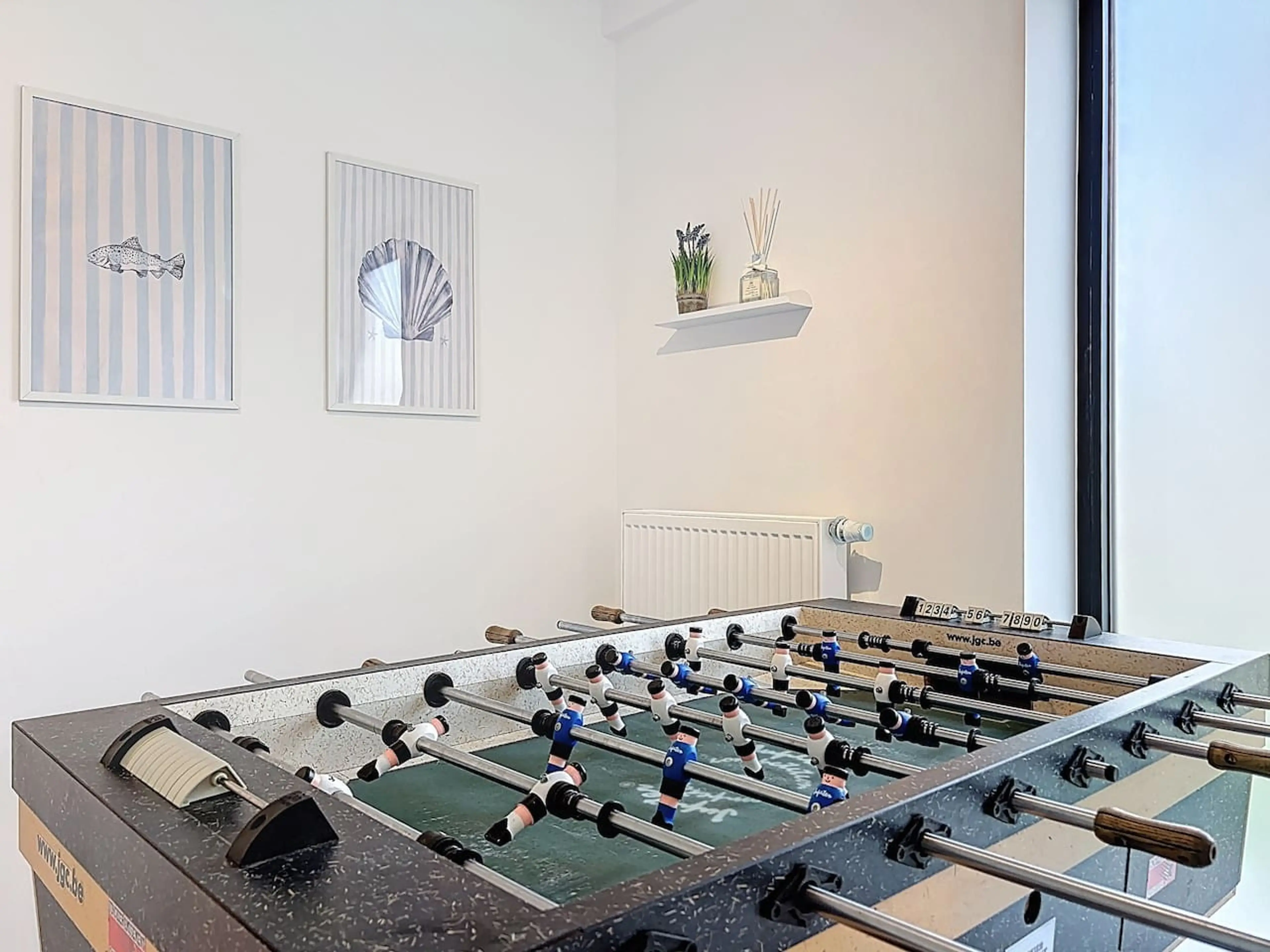 Stylish home for up to 9 guests, within walking distance of Sint-Idesbald. The house features 5 bedrooms, each with a private bathroom, a spacious living area, and a separate game room with darts and foosball. Enjoy the large terrace and easy parking for 2 cars. Located 900 m from the beach and clos...